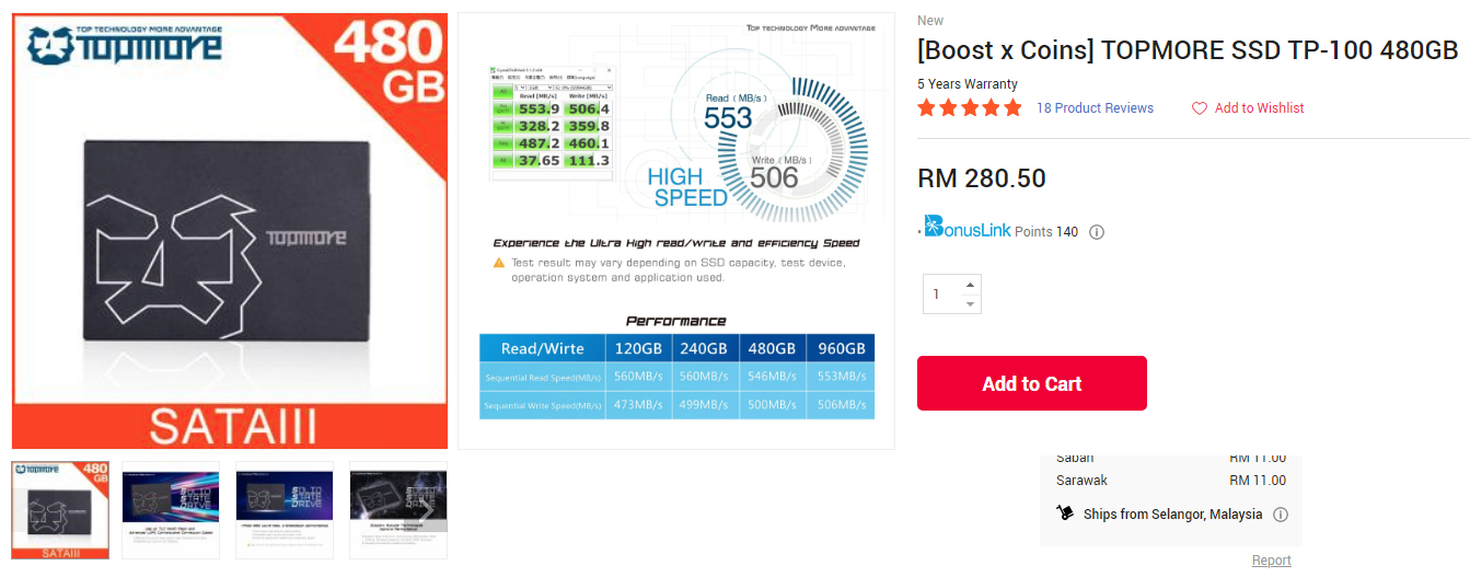 SSD – Topmore TP100 SSD TLC 2.5″ SATA III 480GB – RM11 (Delivery) claim by boost 28100 coin x 1pc