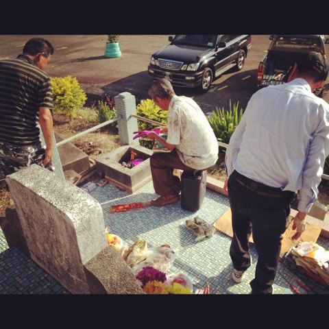 四月三号:凌晨四点半,父亲就叫我起床!因为今天约好要去扫墓,0445我便跟着父亲出发去「丽都」买早餐与拜拜的供品!没想到这一次,竟然让我回想到小时候跟着父亲到「丽都」的回忆!一路上我们也和以前一样都没太多的话,我们都是用眼神或支体语言来沟通,所以他买东西而我就帮忙拿东西,因为种种原因导致我们不太会与对方说话!哈哈。。现在有比较好,还是有说话的时候!